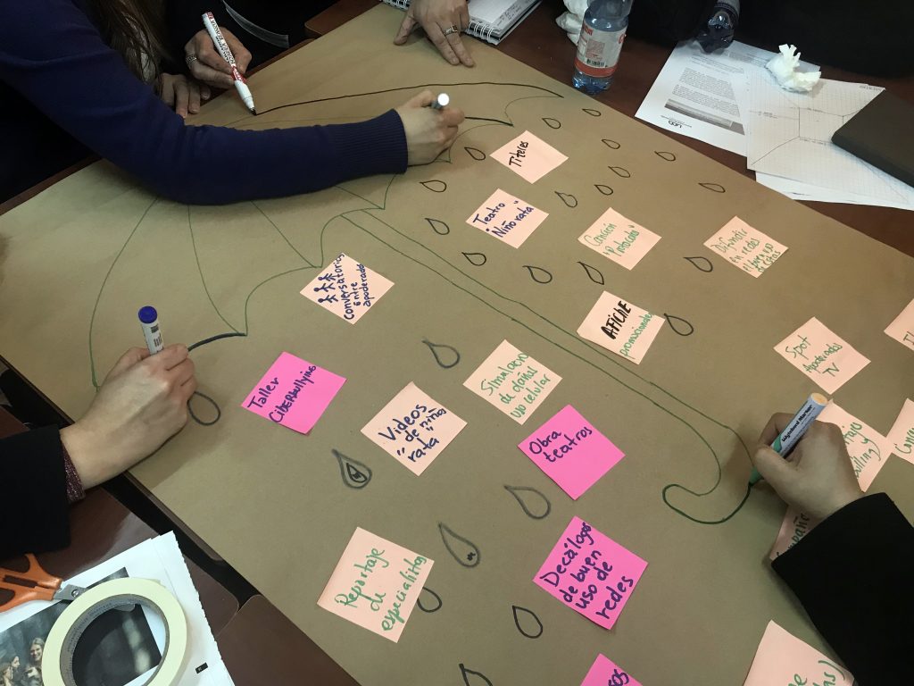 Las intervenciones de Edutech se cristalizan en actividades de formación y entrenamiento para la identificación de problemáticas de la comunidad, y la comunicación y canalización de demandas comunitarias. Por medio de metodologías de diseño participativo como el Design Thinking, el Diseño para Mejorar la Vida o el pensamiento ágil, se convoca a líderes catalizadores con otros actores comunitarios para modelar soluciones colectivas, en un interactivo espacio de encuentro. Por lo general, se trata de escuelas del sector que Tech Policy interviene en los que se organizan talleres de innovación social y tecnología con estudiantes y/o profesores del polígono bajo estudio.