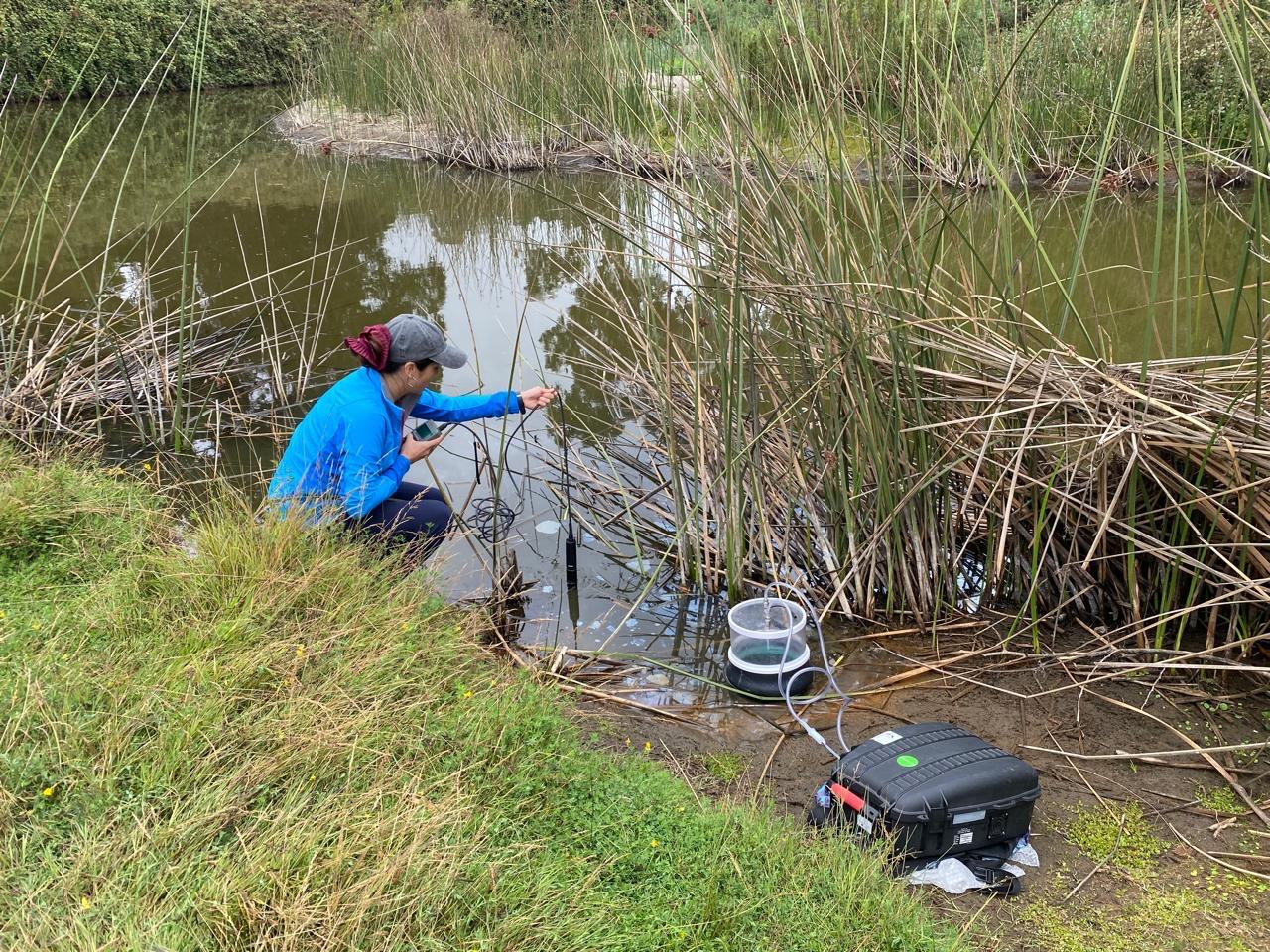 En el marco de nuestra investigación sobre flujos de gases de efecto invernadero en el humedal de Mantagua, registramos señales claras de una disminución del oxígeno disuelto en el agua, evidenciadas por un aumento inusual en las concentraciones de metano de hasta cien veces más respecto a los meses anteriores y una reducción a la mitad del dióxido de carbono.