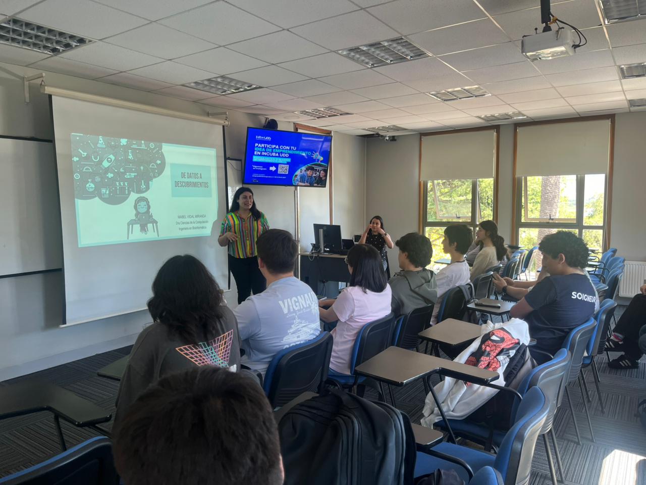 En el contexto de la conmemoración del Día Internacional de la Mujer, estudiantes de Ingeniería Civil en Informática e Innovación Tecnológica en la sede Concepción, participaron en una charla dictada por la Dra. Mabel Vidal Miranda, Doctora en Ciencias de la Computación, profesora asociada de la Universidad de Concepción y ganadora del Premio UNESCO para Mujeres en Ciencia.