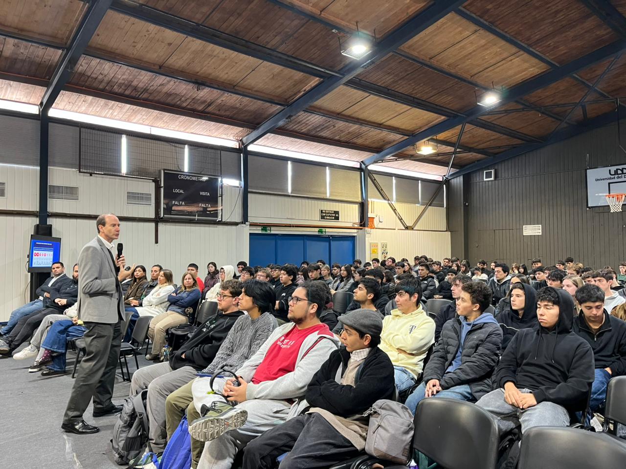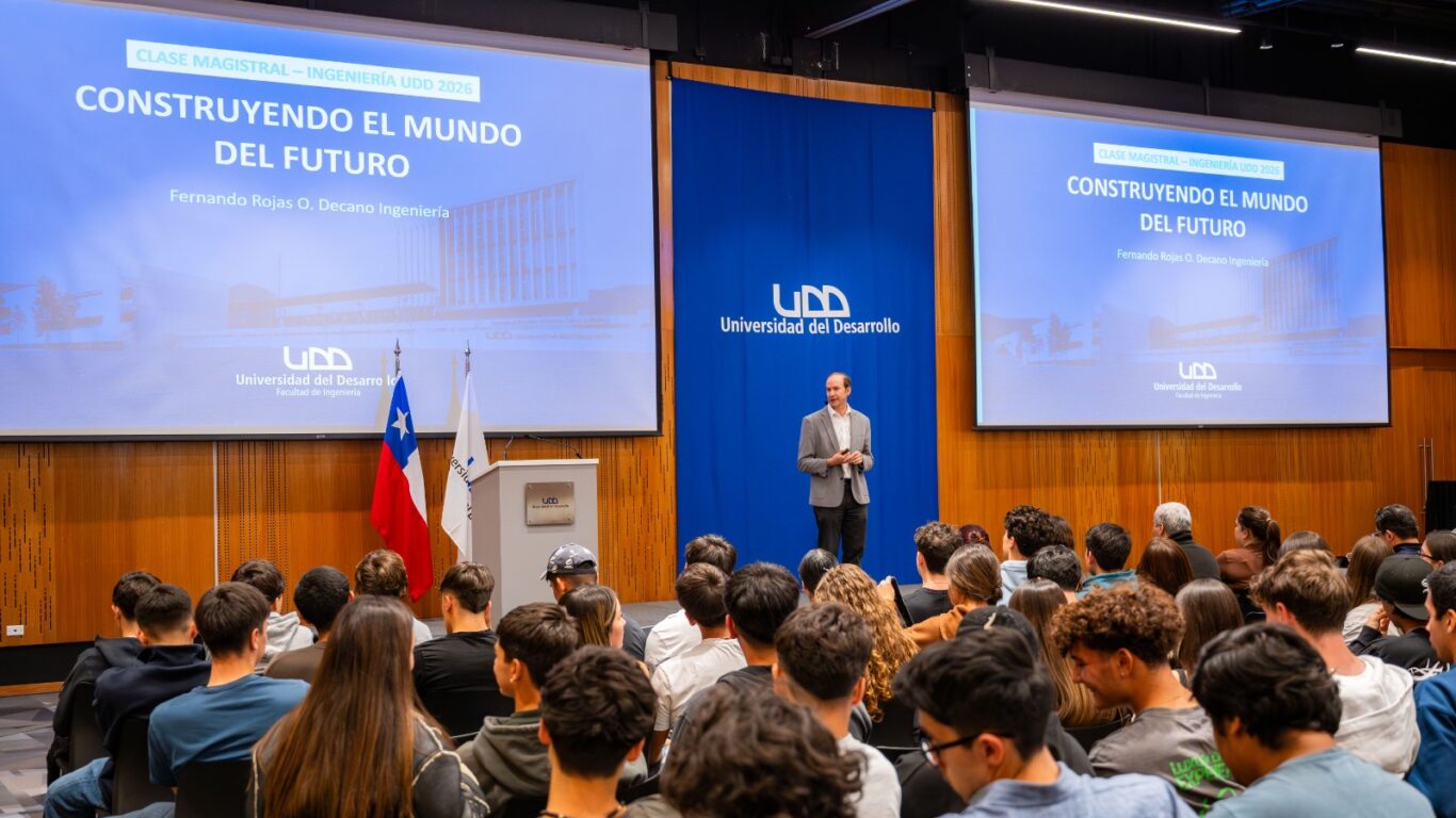 En las sedes de Santiago y Concepción, estudiantes de primer año participaron en la charla magistral “Construyendo el Mundo del Futuro”, liderada por el decano Fernando Rojas, en el marco del inicio del año académico 2026.