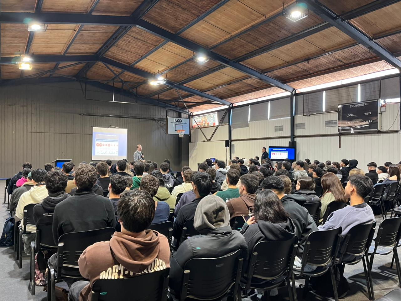 Asimismo, la charla presentó los principales atributos del modelo formativo de Ingeniería UDD, destacando su vinculación con el entorno real a través del programa Ingeniería con la Empresa, que permite a los estudiantes integrarse tempranamente a organizaciones y desarrollar proyectos aplicados. También se relevaron las oportunidades en investigación, innovación, internacionalización y liderazgo, junto con los sistemas de apoyo académico y bienestar estudiantil.