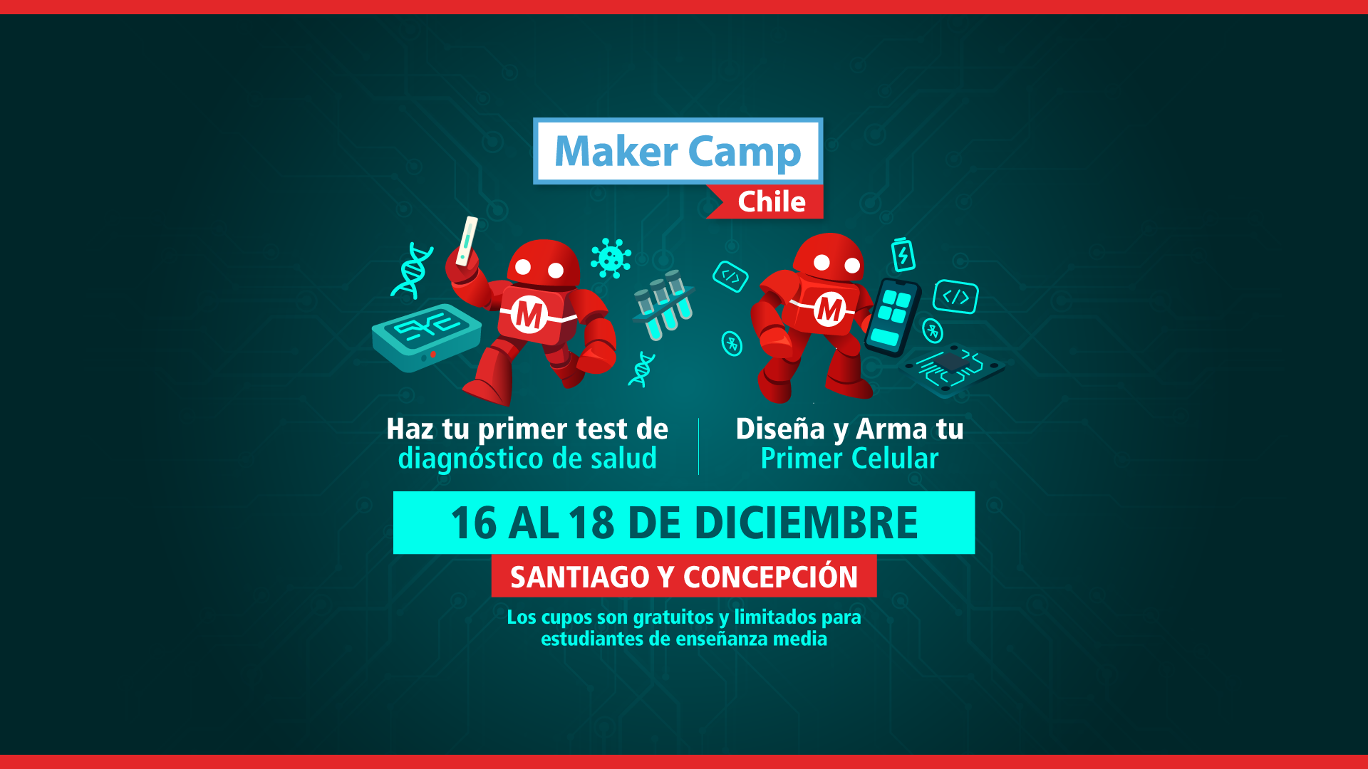 Los esperamos en un nuevo Maker Camp, una experiencia única donde alumnos y alumnas de Enseñanza Media podrán aprender sobre nuevas tecnologías e innovación.